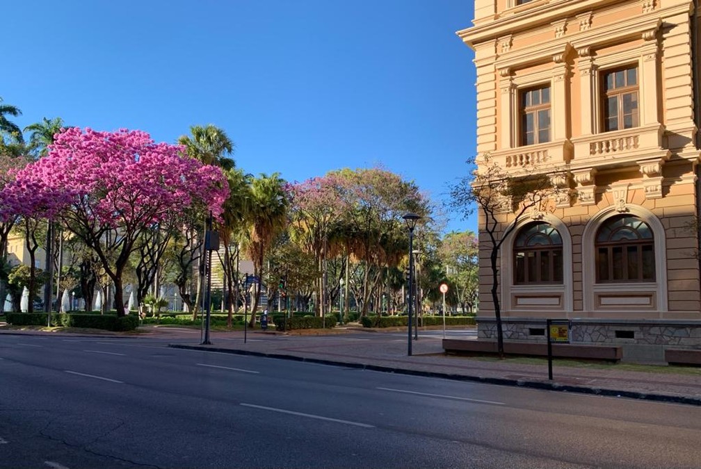 O céu azul de inverno, praticamente sem nuvens, ganhou nos últimos dias o contraste com o cor-de-rosa em Belo Horizonte. É a época da florada dos ipês, deixando evidente o título de “cidade-jardim” da capital.