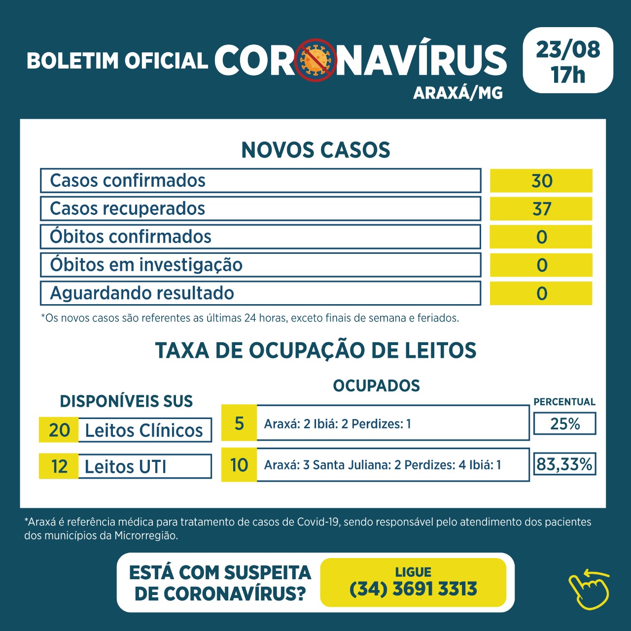 Boletim Epidemiológico desta segunda-feira, 23 de agosto