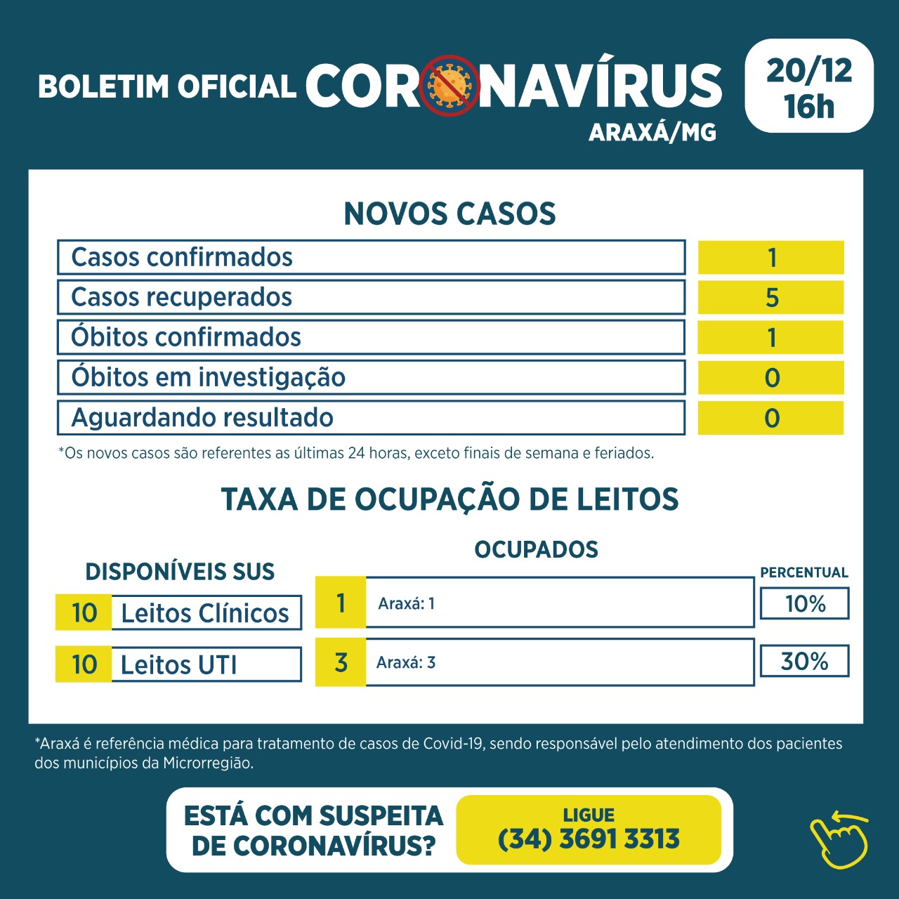Boletim Epidemiológico desta segunda, dia 20 de dezembro.