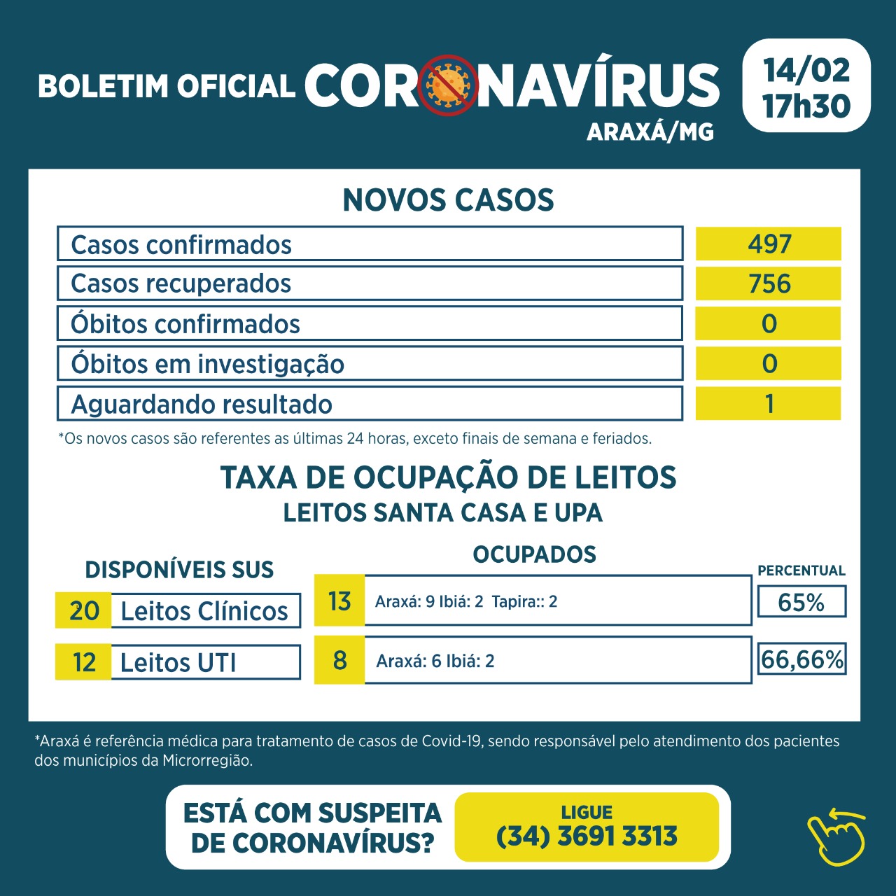 Segue Boletim Epidemiológico desta segunda, 14 de fevereiro.