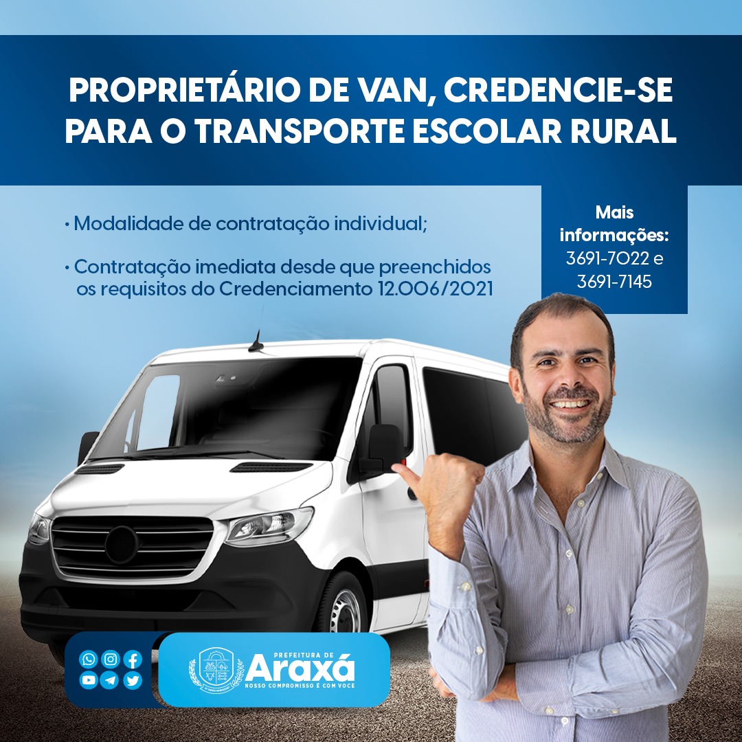 A Secretaria Municipal de Educação reabriu inscrições para o credenciamento de proprietários de vans (pessoas físicas) com interesse em realizar o transporte escolar de alunos da zona rural. O objetivo é atender todos os estudantes residentes em fazendas, chácaras e ranchos do município. Ao todo, 13 linhas devem ser preenchidas no novo credenciamento.