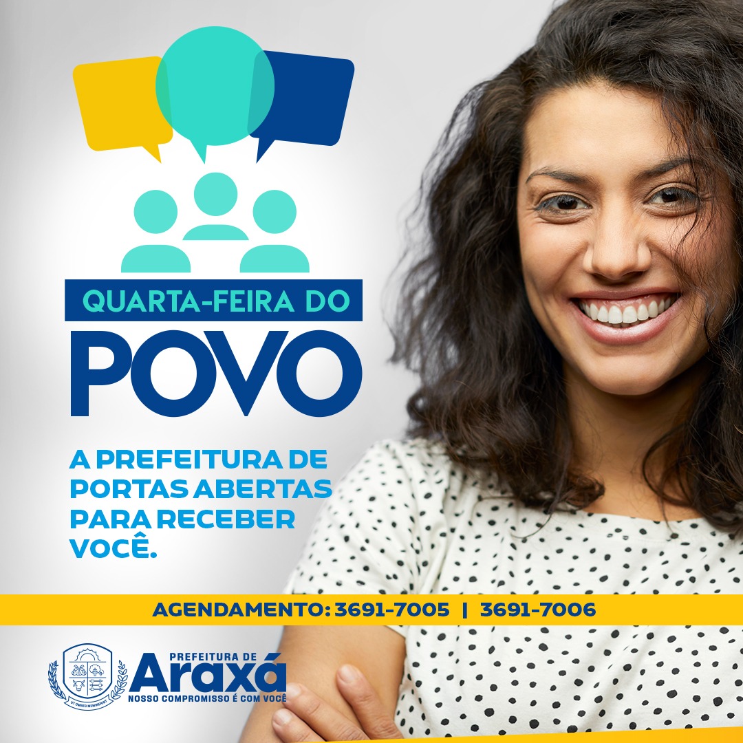 Oportunidade de reivindicar e sugerir projetos para a gestão da cidade diretamente ao prefeito municipal. A Prefeitura de Araxá retoma nesta semana o programa “Quarta-feira do Povo”. A proposta, que foi iniciada em 2021 e suspensa por conta da pandemia da Covid-19, tem como objetivo aumentar a participação da população na construção de ações que vão contribuir com o desenvolvimento do município.