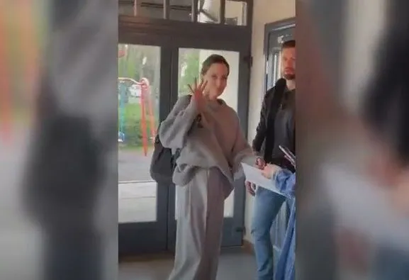 A atriz norte-americana foi flagrada no interior de um café em Lviv e cumprimentou a pessoa que fazia o vídeo dela no lugar. Ela também sorriu, cumprimentou as pessoas que estavam no estabelecimento e deu alguns autógrafos. Ela também foi uma estação de trem para conhecer algumas pessoas desalojadas pela guerra com a Rússia.