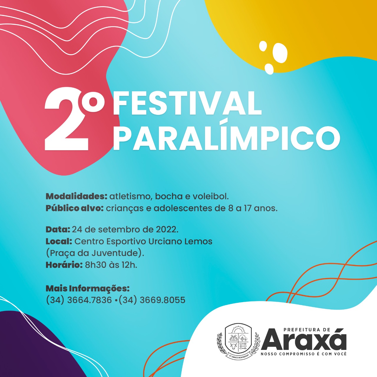 Para oferecer a crianças e adolescentes a experiência de participar de modalidades paralímpicas e propiciar a inclusão social por meio do esporte, Araxá sedia pelo segundo ano consecutivo o Festival Paralímpico O evento nacional acontece no dia 24 de setembro, das 8h30 às 12h, na Praça da Juventude, no bairro Urciano Lemos.