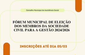 Estão abertas as inscrições para a eleição de conselheiros da sociedade civil do Conselho Municipal de Assistência Social (CMAS) para a gestão do biênio 2024/2026.