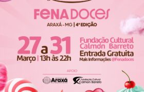 Preparem os paladares. A Feira de Doces de Araxá, a Fenadoces, está de volta para sua quarta edição. O evento, que se tornou uma referência em todo Estado, acontece entre os dias 27 e 31 de março, no Pátio da Fundação Cultural Calmon Barreto (FCCB) e promete movimentar a economia local.