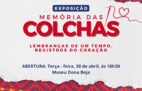 Museu Histórico de Araxá – Dona Beja recebe a abertura da Exposição “Memória das Colchas”, nesta terça-feira (30), às 18h30. Com o tema “Lembranças de um tempo, registros do coração”, a mostra traz 10 colchas, algumas com mais de 100 anos e que passaram de geração em geração.
