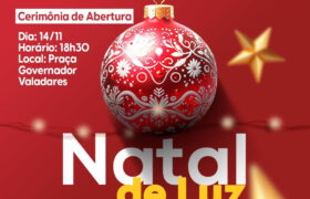 Venha participar da cerimônia de abertura da iluminação natalina, que acontecerá na Praça Governador Valadares, no Centro. Será um momento especial para celebrar a união, o amor e a esperança que o Natal traz.